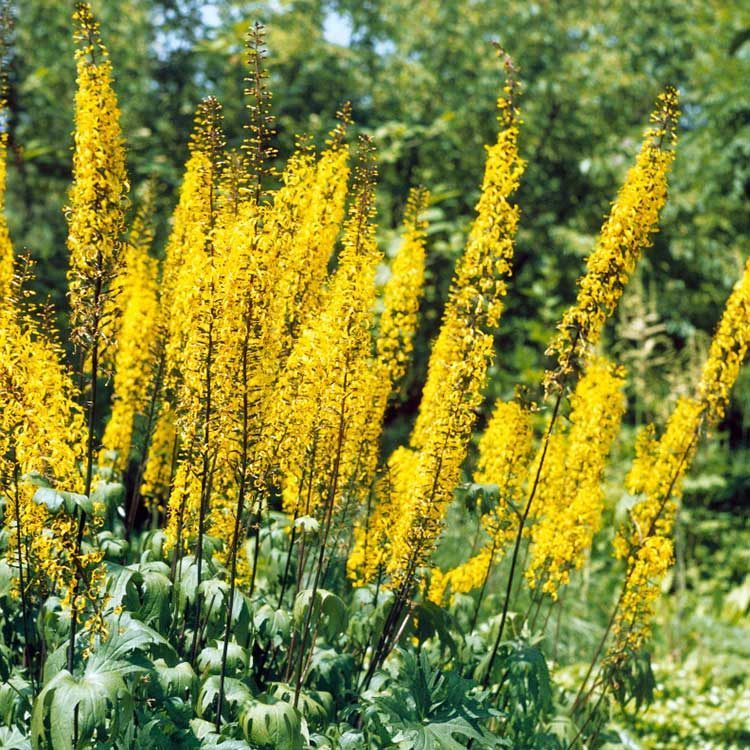 Бузульник Пржевальского внешне напоминает свечку. Стебель длиной до 2 метров условно можно разделить на три отрезка. Верхняя часть – цветоносы и соцветия, собранные в плотную узкую кисть. Мелкие желтые цветки смотрятся как свечи, красиво раскачиваясь и кренясь под собственным весом. Период цветения бузульника Пржевальского приходится на середину июня и продолжается до конца лета.