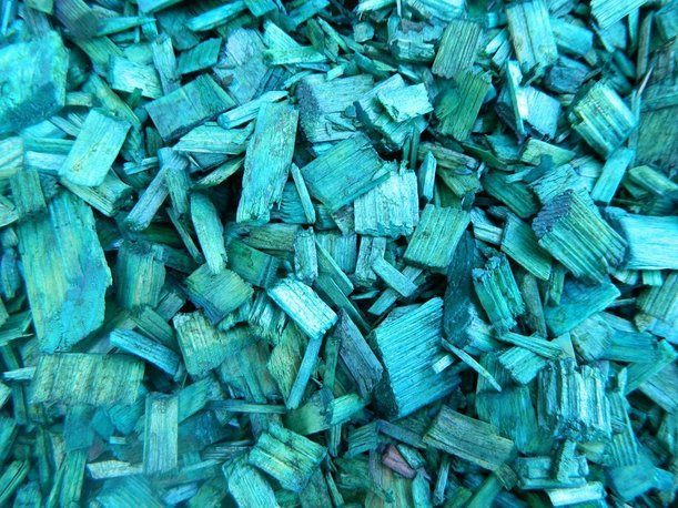 Щепа бирюзовая поможет объединить типы клумб в гармоничную композицию или выделить лишь отдельные из них. В комбинации с мульчей других оттенков она подходит для создания замысловатых орнаментов на газонах или площадках. Одного мешка декоративной бирюзовой щепы (50 л) достаточно для покрытия участка в 1 м2 пластом в 3-4 см. Для ее использования требуется специальная подготовка грунта – достаточно его немного разровнять. Также не нужны особые навыки и таланты – руководствуйтесь своим вкусом и будет вам счастье!